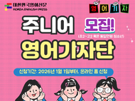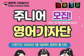2026 대한민국영어신문 주니어 영어기자단 모집 안내영어로 세상을 보고, 글로 성장하는 주니어 기자단! 1. 모집 대상 모집 인원: 총 00명 한정 모집 지원 자격: 초등학교 2학년 ~ 고등학교 2학년 학생 및 동일연령 청소년 (영어에 관심이 있고, 글쓰기와 인터뷰 활동에 도전하고 싶은 학생 누구나) 2. 활동 내용 영어신문 기자로서 기사 작성, 인터뷰, 취재, 콘텐츠 기획 참여 온라인 영어 학습 콘텐츠 무료 제공 및 기사 첨삭 지도를 통한 영어 실력 향상 정기 영어 특강, 현장 캠프, 멘토링, 전문가 영어학습 컨설팅 제공 작성한 기사는 대한민국영어신문 공식 온라인 플랫폼에 게재 3. 혜택 및 특전 영어기자증 발급 및 임명식 진행 우수기자 시상 및 특전 제공 1:1 기사첨삭 및 학습 피드백 온라인 영어 학습 콘텐츠 무료 제공 연간 36회 이상 기사 게재 기회 부여 -> 공식 칼럼 섹션 제공 4. 모집 일정 신청 기간: 2025년 1월 2일(금)부터 신청 방법: 1) 대한민국영어신문 홈페이지 온라인 폼 신청 * 아래 링크 클릭 기자단 신청 링크 (클릭!!!) 2) 영문 자기소개서(양